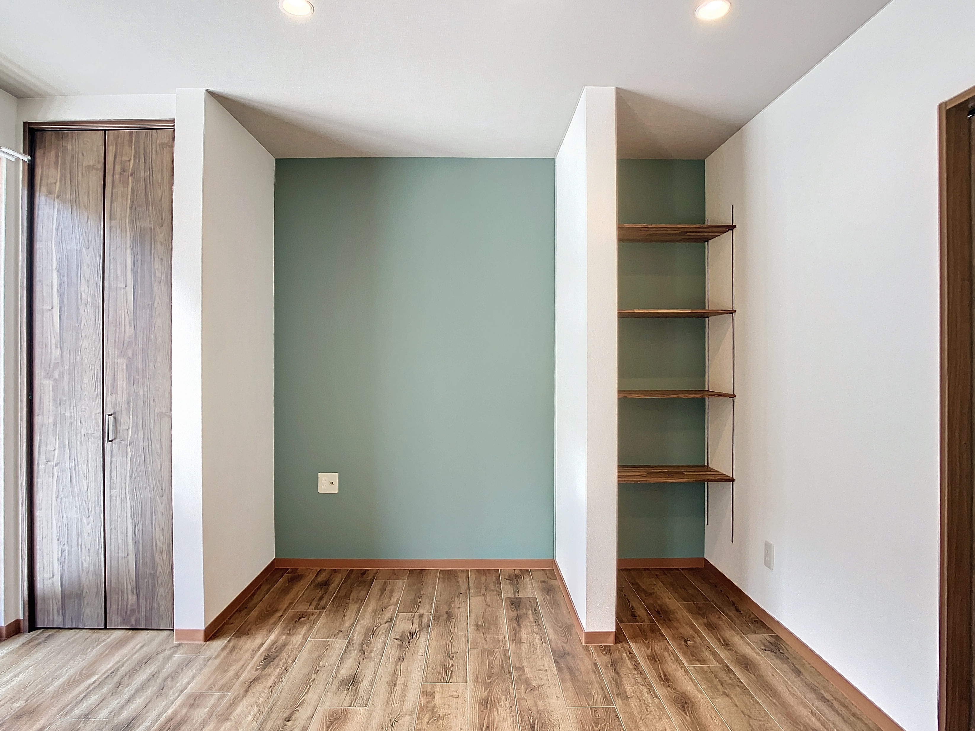 画像では分かりにくいかもしれませんが、壁の1面のみグレー色のアクセント壁紙が貼られています。