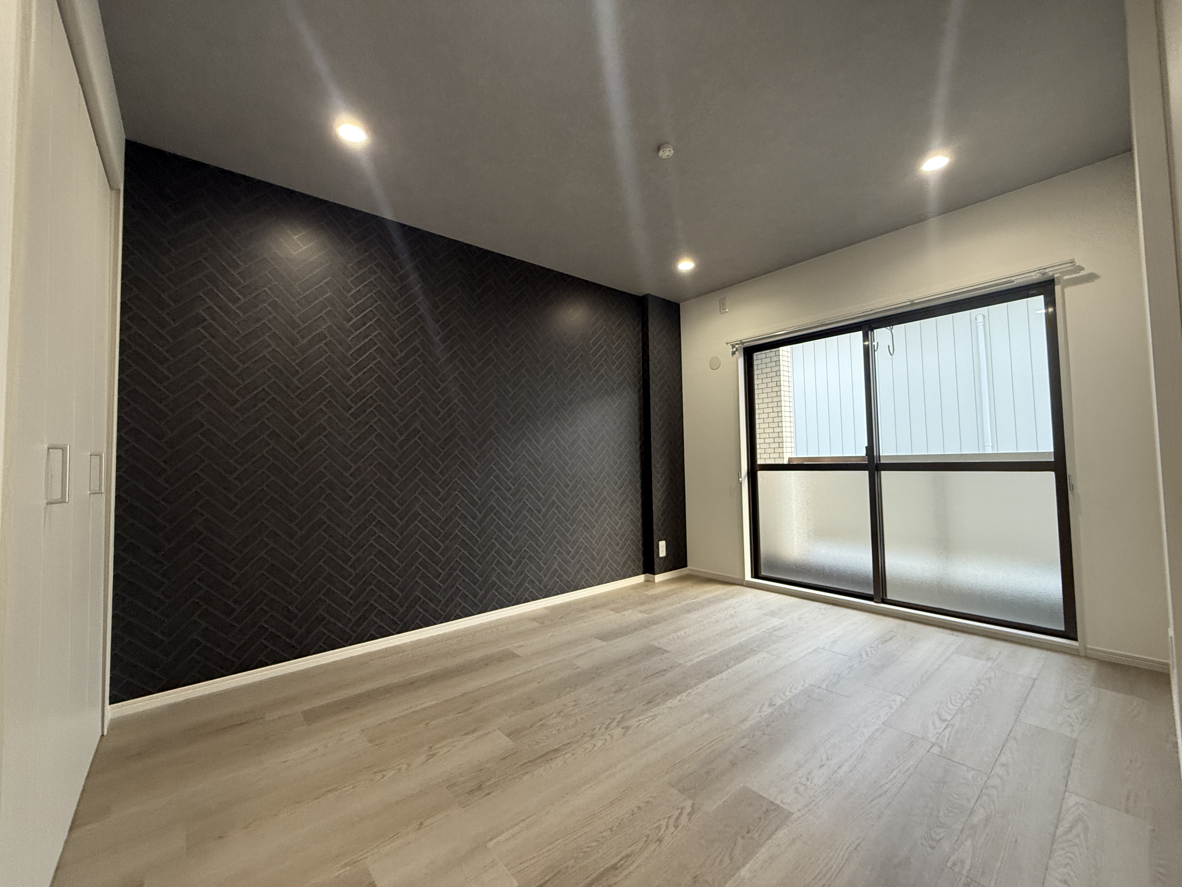 LDK横にあった和室は洋室化し、壁面にはアクセントとなる壁紙。